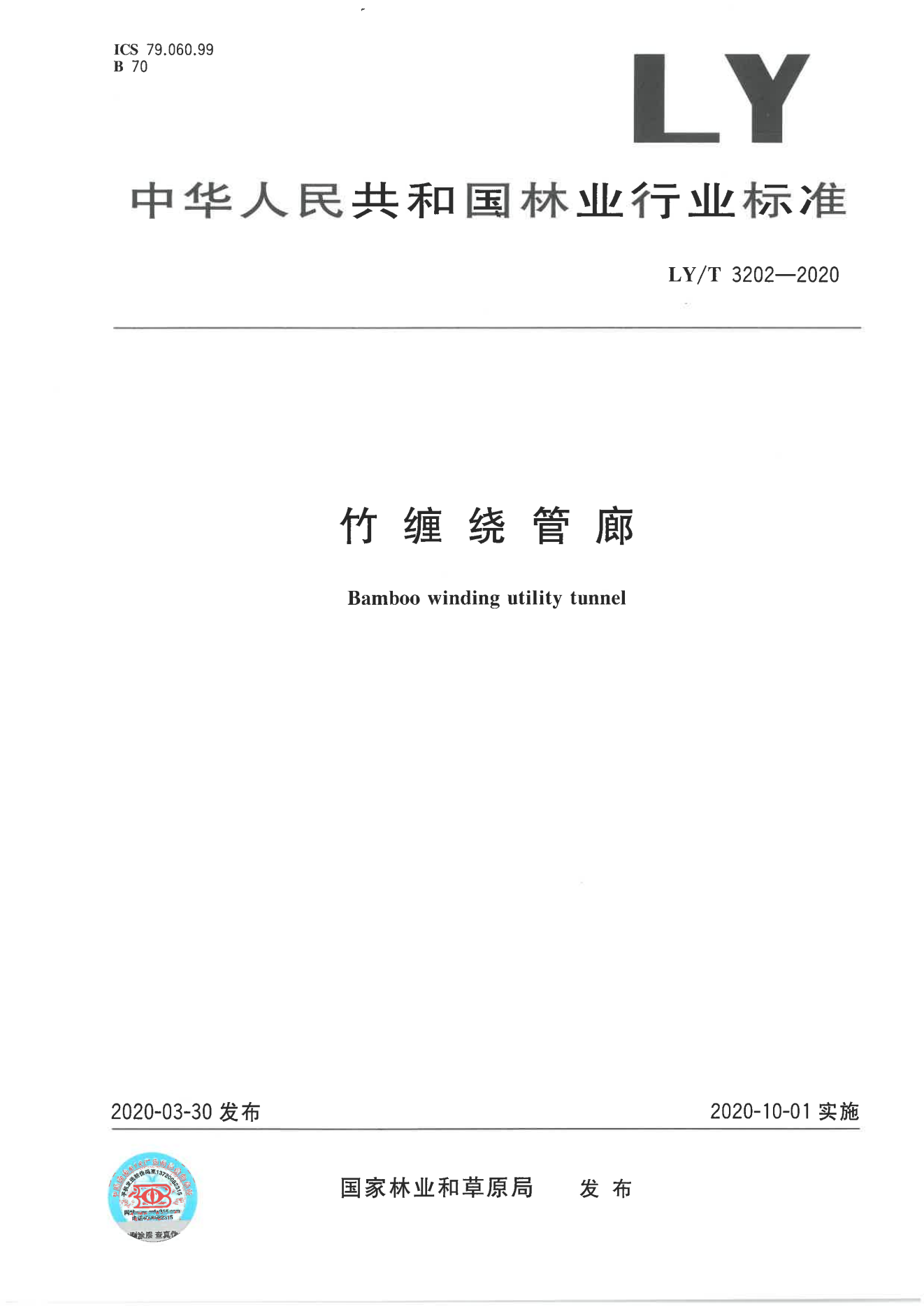 正版 林业行业标准《竹缠绕管廊》(LYT3202-2020)-扫描版(1).pdf