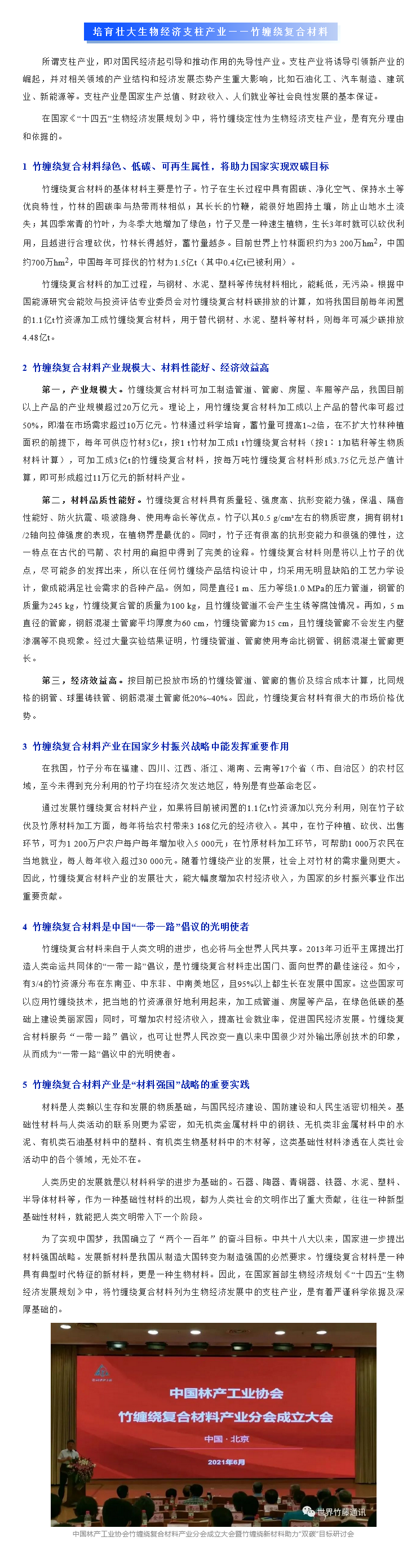 特别报道 | 竹缠绕复合材料将成为人类社会生物经济发展时期的支柱产业!